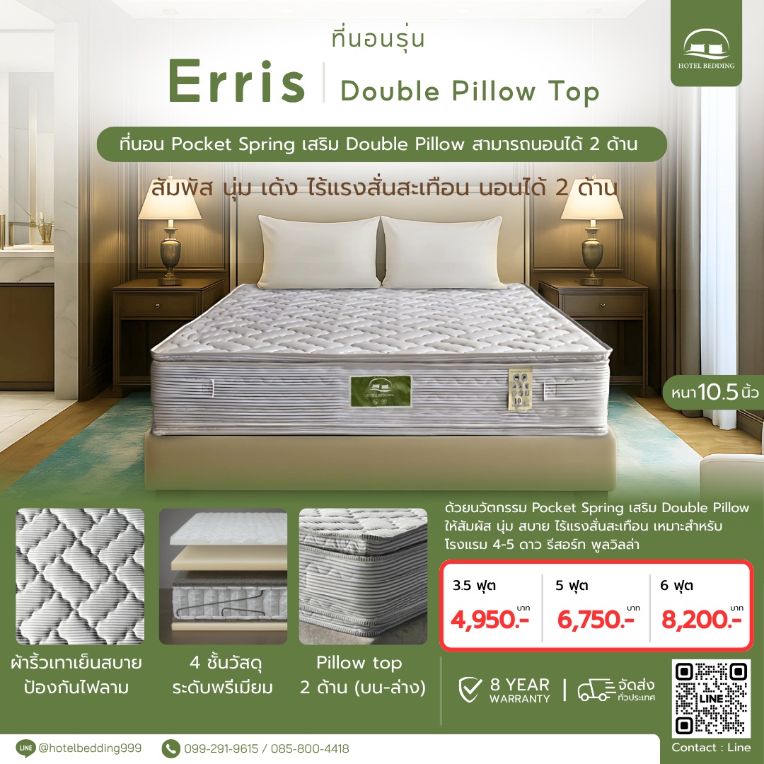 ที่นอน pocket spring เสริม double pillow นอนได้ 2 ด้าน