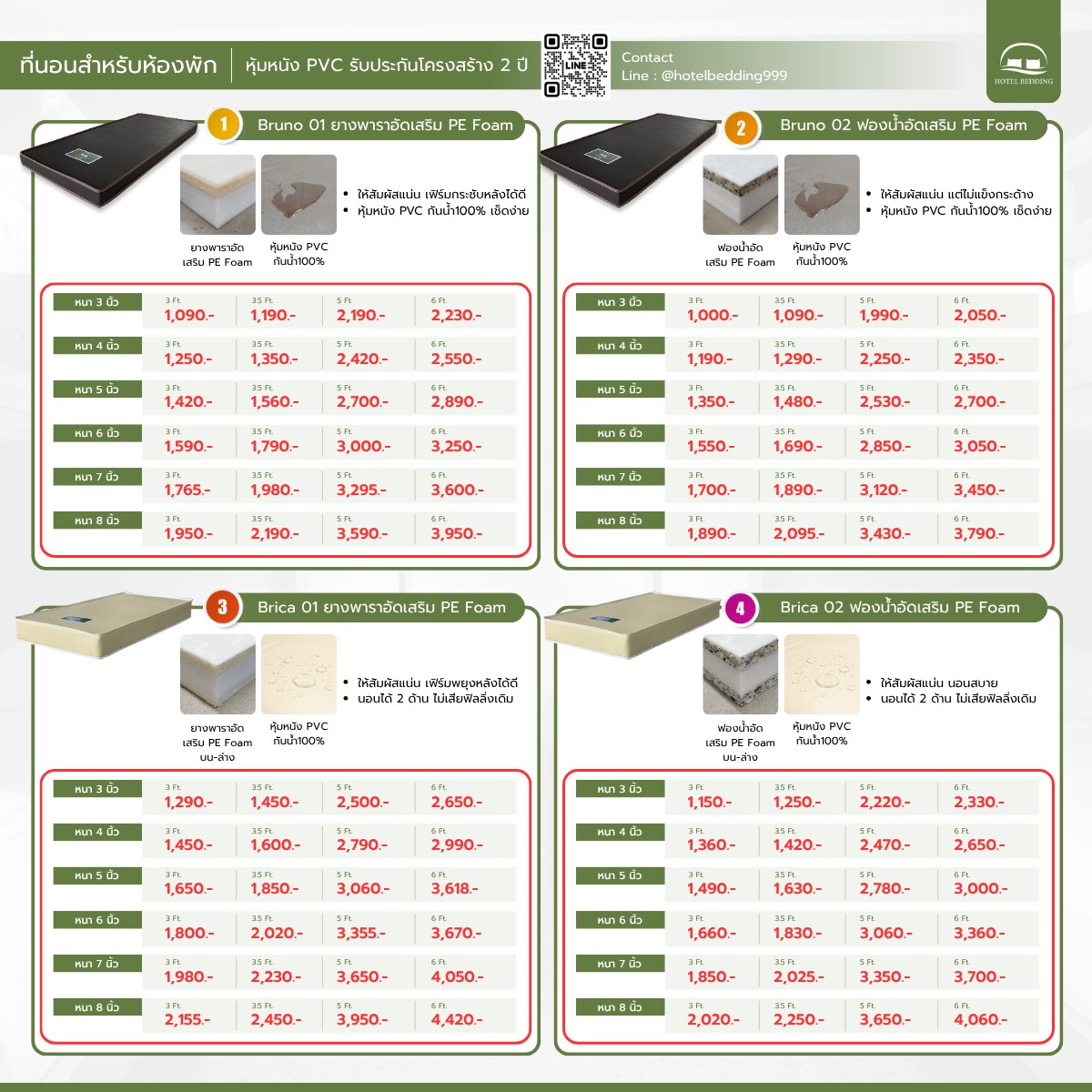 4 รุ่นที่นอนขายดี