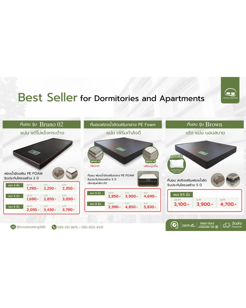 ที่นอนขายดีสำหรับหอพักและอพาร์ทเม้นท์